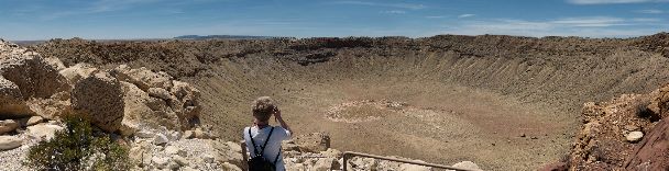 A good example of what happens when a small asteroid hits the Earth is Meteor Crater, also known as Barringer Crater, near Winslow, Arizona.
